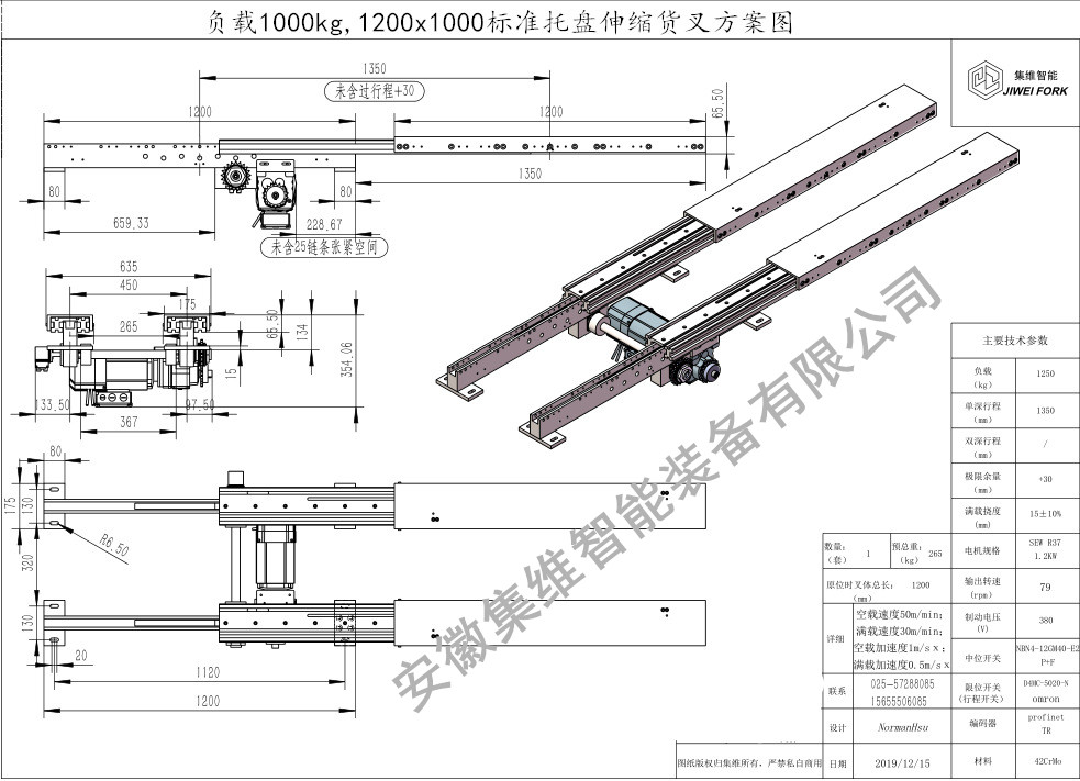 安徽集维智能装备有限公司是一家集研发、设计、生产、销售为一体的伸缩牙叉生产制造企业,拥有多位资历深厚的工程设计团队和经验丰富的技术师,全套的机加工设备,完全自主设计、自主生产,具备年生产1200台套伸缩货叉的制造能力,具有快速完成方案的设计能力,以及短期交付的生产加工能力,具备提前交付或快速交付的应急能力!